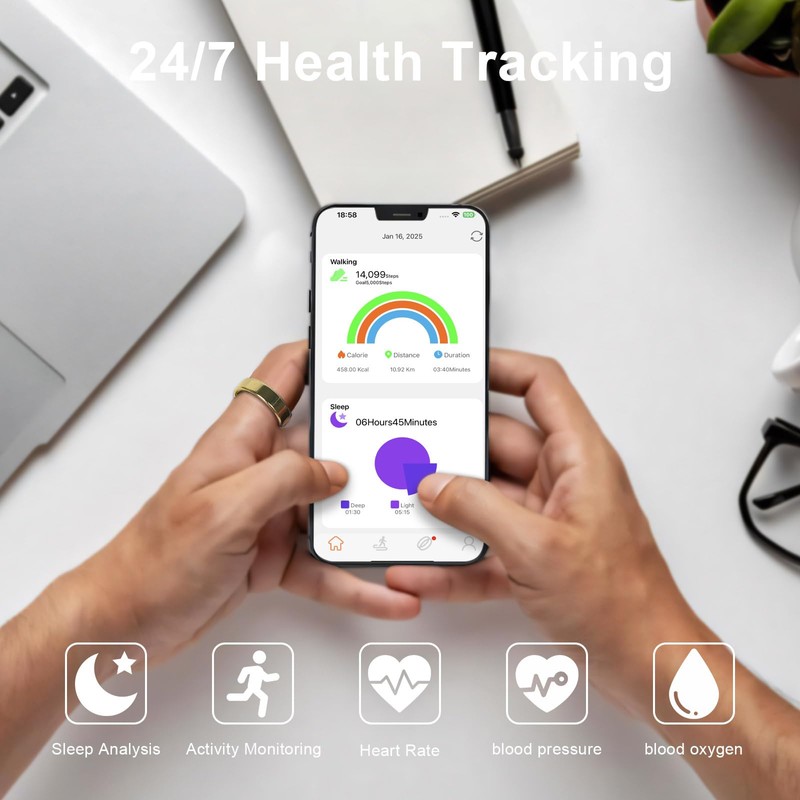 - No Subscription Fees: Easily connect your smart ring to your iOS or Android device via Bluetooth for seamless data tracking and app control. No subscription fees required. Once synced, manage and view data directly on your smartphone.