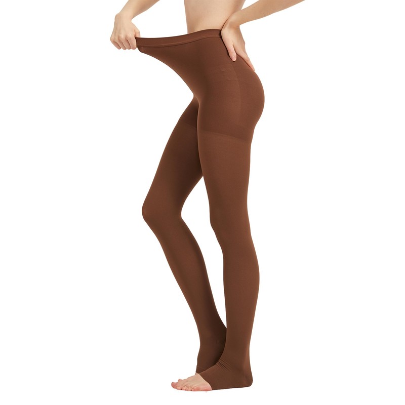 AMZAM® Medical Compression Pantyhose for Women Men, 20-30 mmHg Graduated Compression Tights, Opaque Toeless Compression Stockings Waist High Support Tights for Edema, Varicose Veins, DVT, Brown XXL