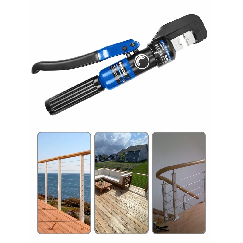AMZCNC Hydraulic Hand Crimper Tool for Stainless Steel Cable Railing Fittings for 1/16" 1/8" 3/16" 1/4" Cable –Wire Swaging Tool 8 Ton and Stainless Steel Cable Cutter