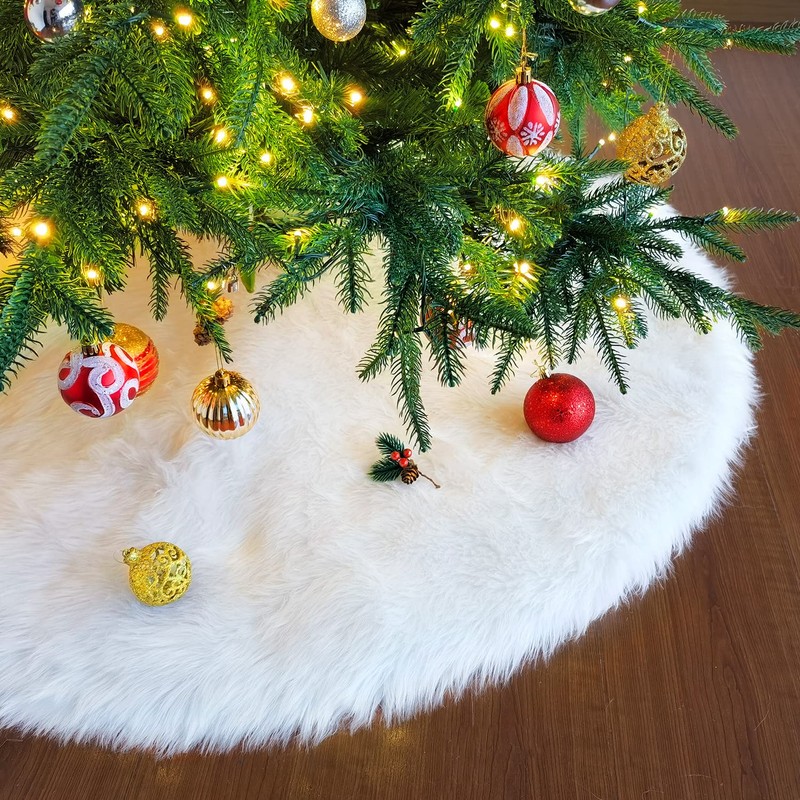 AMZHRLY 36 Inch Christmas Tree Skirt White Faux Fur Xmas Tree Skirt Christmas Decorations Holiday Tree Ornaments