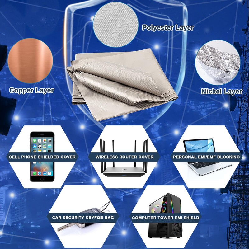 - 【Military Shielding Material】This fabric blends polyester with metallic copper and nickel, creating a conductive grid similar to a faraday cage. Trusted by law enforcement and the military, it blocks electronic signals, defends against EMPs, and is ideal for signal-proof rooms or tents.