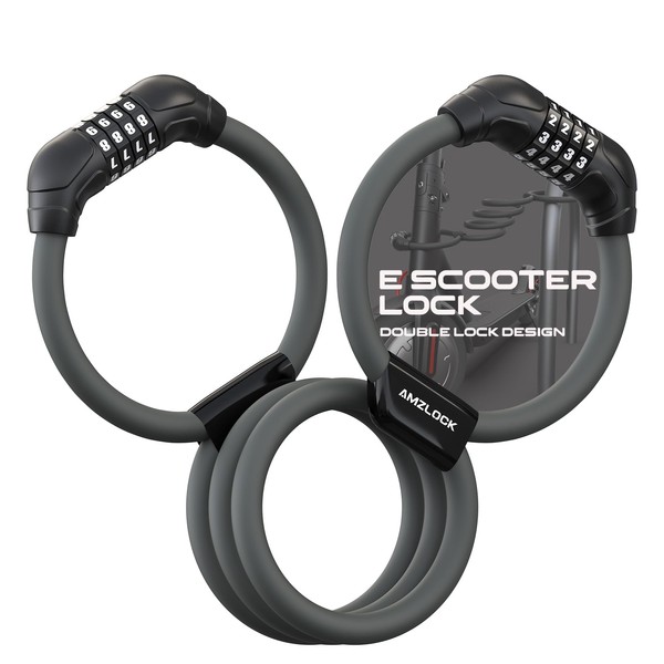 AMZLOCK E Scooter Lock, Double Lock Cable Lock, Lock for E Scooter with 4 Dig...
