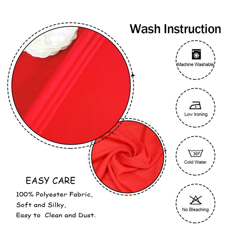 (3) These handmade sheer voile scarfs are made of premium translucent chiffon fabric. Our semi-sheer scarfs are very soft, elegant and wrinkle-free. These drapery fabric panels are durable and reusable. The edges of the chiffon wedding arch drapes are designed with folding frames and fine stitches to ensure an elegant appearance and no loose threads. Easy to hang, good vertical feeling, durable and easy to clean.