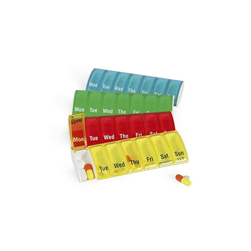 - Simply organise the pills you have to take for the week by distibuting them to the corresponding compartment