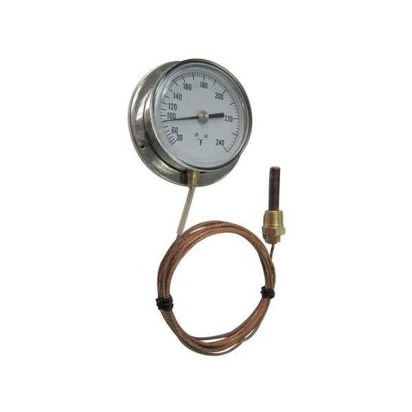 - Price For: Each Tube Material: Bronze Braided Copper Item: Analog Panel Mount Thermometer Sensor Length: 1.87" Sensor Material: Copper Accuracy: +/-1 Scale Division Mounting: Surface with Bottom Outlet Sensor Dia.: 0.437" Sensor Connection: 1/2" NPT Sensing Medium: Vapor Actuated Dial Size: 3-1/2" Tube Length: 60" Lens Material: Polycarbonate