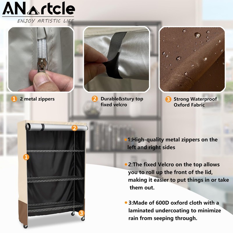 - 【Easy to use】Zipper provides easy access to entire shelving unit