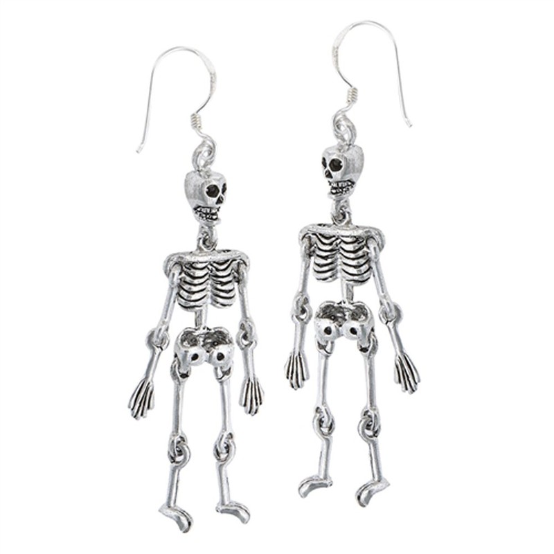 Anatomy Skeleton Bones .925 Sterling Silver Gothic Moving Parts Spooky Earrings