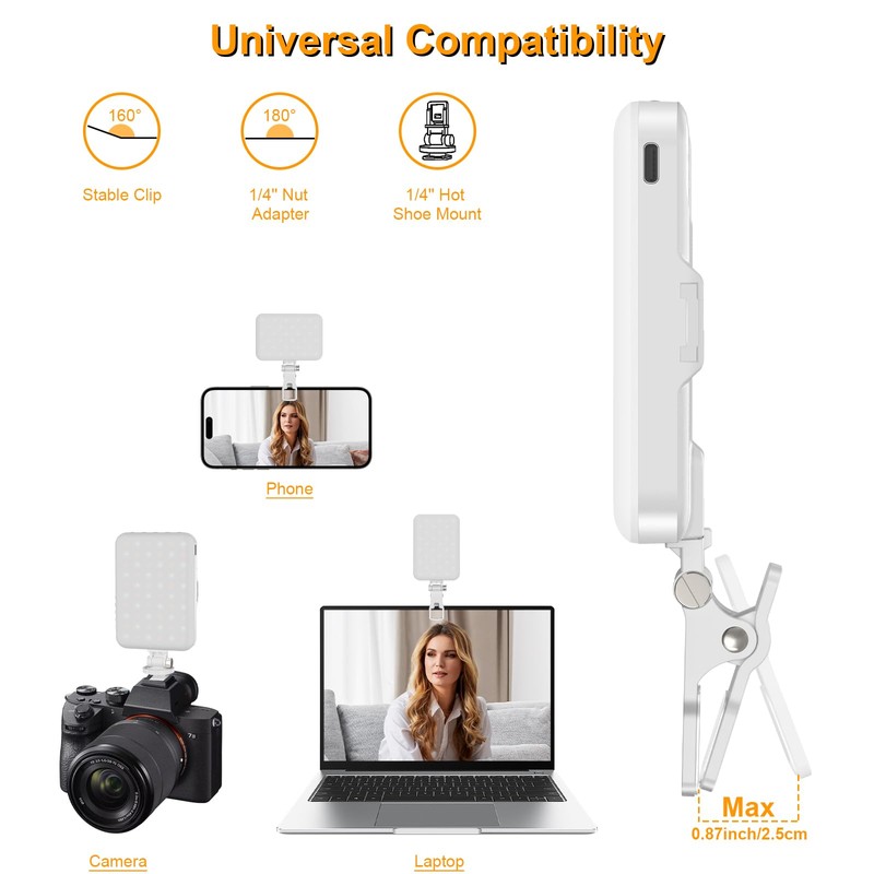 • 【Package & 3 Years Warranty】: This phone selfie light comes with a video light, 160° rotating mount clip, 180° rotating 1/4'' nut adapter, 1/4'' hot shoe mount, type-c charging cable, and storage pouch. If you have any problems with this clip fill video light, just message us and we will give you the best solutions, our customer service will reply within 24 hours.