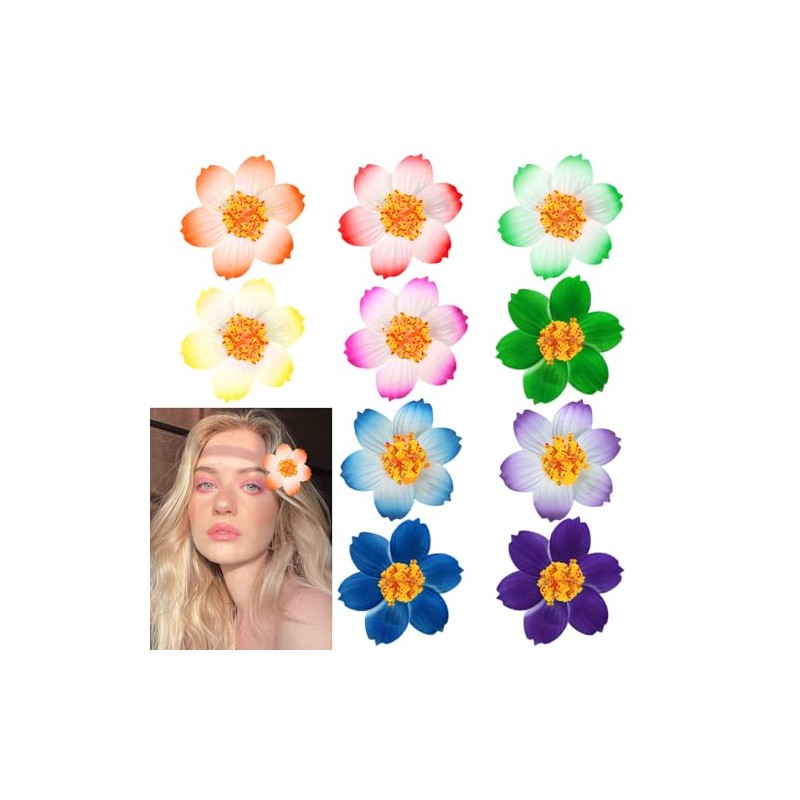 - 10 Assorted Vibrant Hues: You will get 10 pcs flower clips, which contain 10 different color, to match beachwear, bohemian outfits, or bridal looks effortlessly