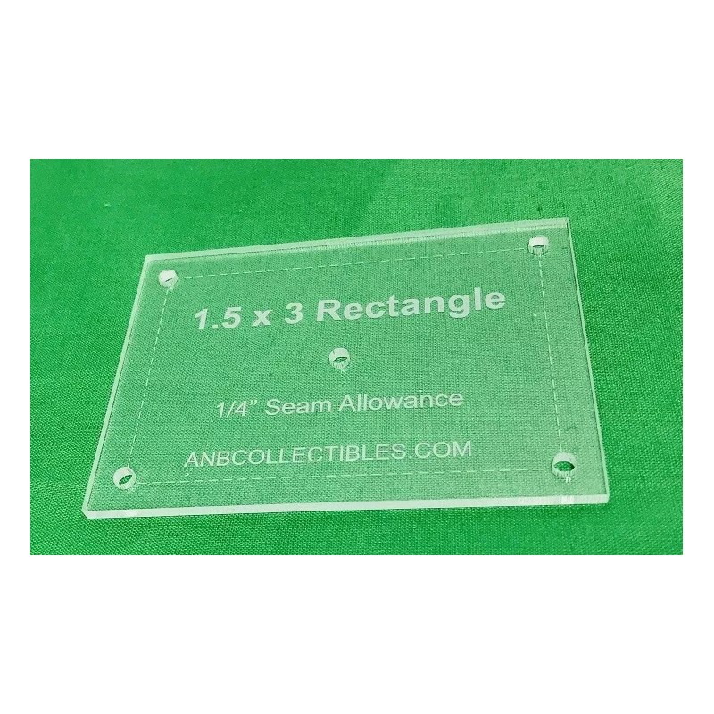 - Laser Cut Acrylic 1.5" x 3" Finished Rectangle Quilting Template (Physical template is size listed plus the 1/4" on each side! Example: 4 inch finished size template would make the template 4 1/2". This gives the quilter a 1/4" seam allowance when sewing. If you are using these with a downloaded PDF pattern that calls for a 4" piece of fabric you would order the 3 1/2" size since they would already have added the 1/4" seam allowance on each side into their measurements.