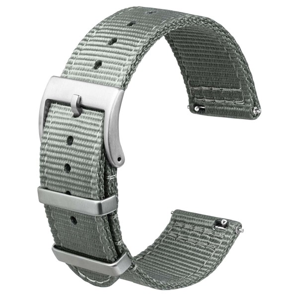 [Anbeer] 18mm 時計バンド ナイロン ツーピース式 クイックリリーズ替えベルト メタル製ループ付き グレー シルバーバックル