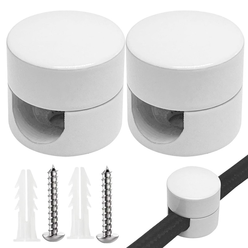 Pack of 2 aluminium wall and ceiling pins for textile cables, ceiling mounting with screws and dowels, monkey swing, surface-mounted cable holder for your own DIY project (white).