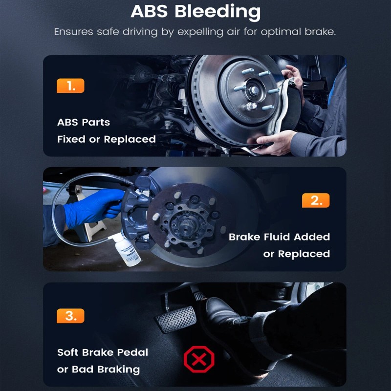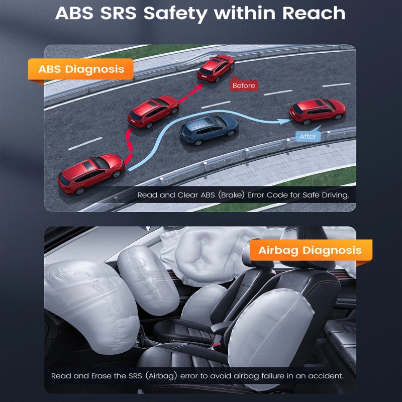When is ABS Bleeding Necessary?It is necessary after replacing the Brake Fluid, Brake Calipers, ABS Pump, ABS Module, Brake Hoses, Wheel Cylinders and more. Notice: not all the features are on the main screen. Please go to the auto vin and click the special function menu to do ABS Bleeding or other operations. Why is SAS Calibration Vital for Precise Control?SAS Calibration calibrates the Steering Angle Sensor in vehicles, ensuring accurate wheel position perception for stability control systems. It requires specialized tools and procedures for accuracy and reliability. Note: Some classic vehicle without the electronic control system can not support the reset service. What the Active Test of ABS SRS Options Include?●ABS Manual Control Tests - Enables manual actuator control for ABS tests. ●ABS Motor Test - Allows manual control of ABS pump motor. ●Actuator Test - Manual control for pumps, AYC, in/out & TRACS valves. ●ABS Version Test - Displays brake system name and ABS controller version number, etc. ●Auto Bleed Test, Automated Bleed, or Service Bleed - Removes air from brake fluid chambers after Braking servicing. ABS SRS DIAGNOSISoffers comprehensive analysis of your vehicle's Anti-lock Braking System (ABS) and Supplemental Restraint System (SRS). Detect issues quickly and accurately, ensuring your safety on the road. LIFETIME FREE WIFI UPDATEEnjoy a lifetime of free WiFi updates, keeping your software always up to date and informed. Say goodbye to outdated connections. LIVE DATA IN TWO GRAPHSThe obd2 scanner shows real-time data graphically, checks parameters like temperature and speed. Enables quick decisions and accurate troubleshooting. |