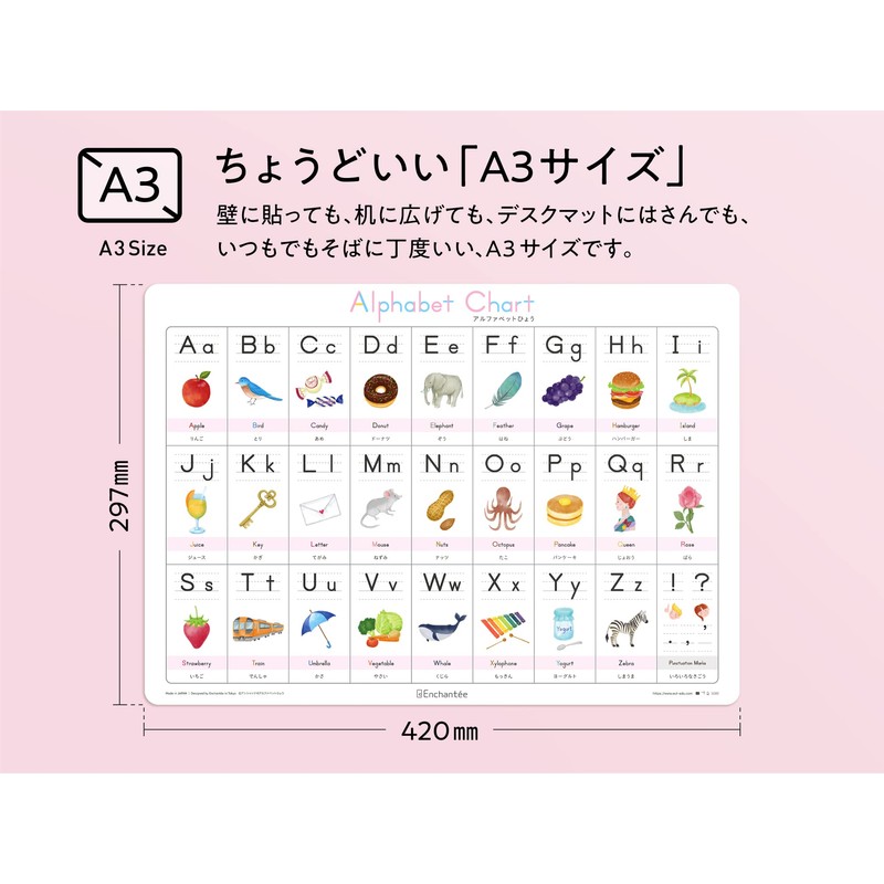 - Alphabet Chart: A3 size (11.7 x 16.5 inches (297 x 420 mm), Rounded corners, Waterproof