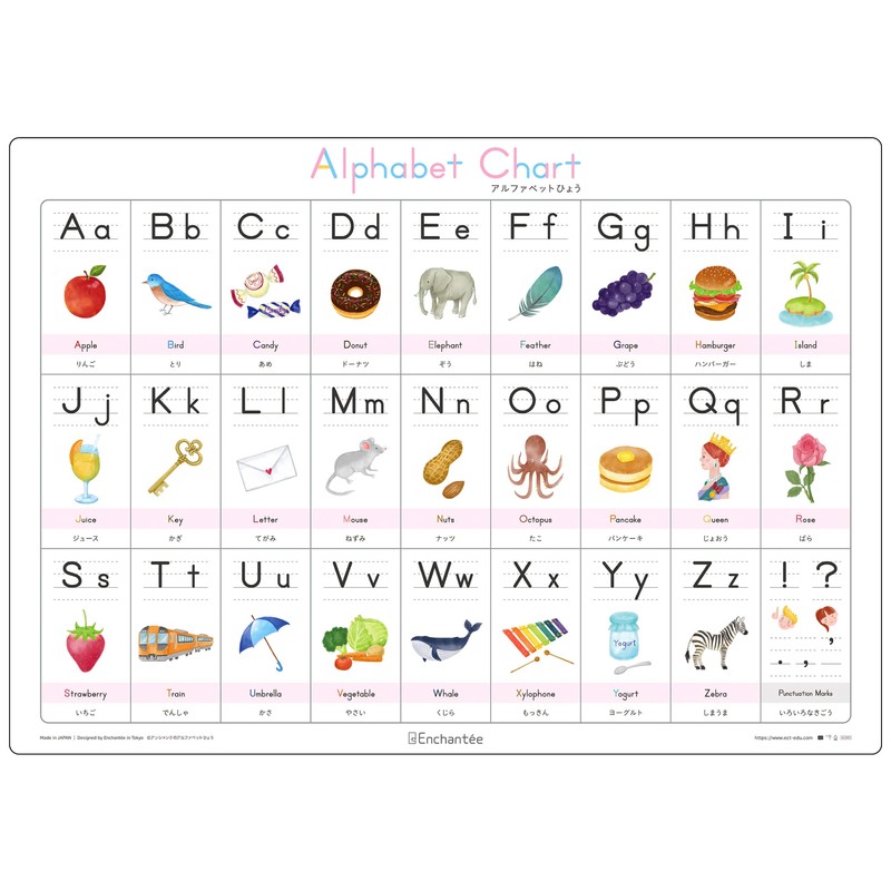 Anchante Alphabet Hail [Alphabet Chart] A3, Rounded Corners, Waterproof