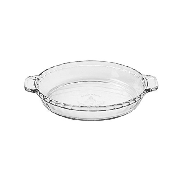 • 9.5-inch round,1.5-quart capacity deep pie dish of Anchor Hocking clear glass