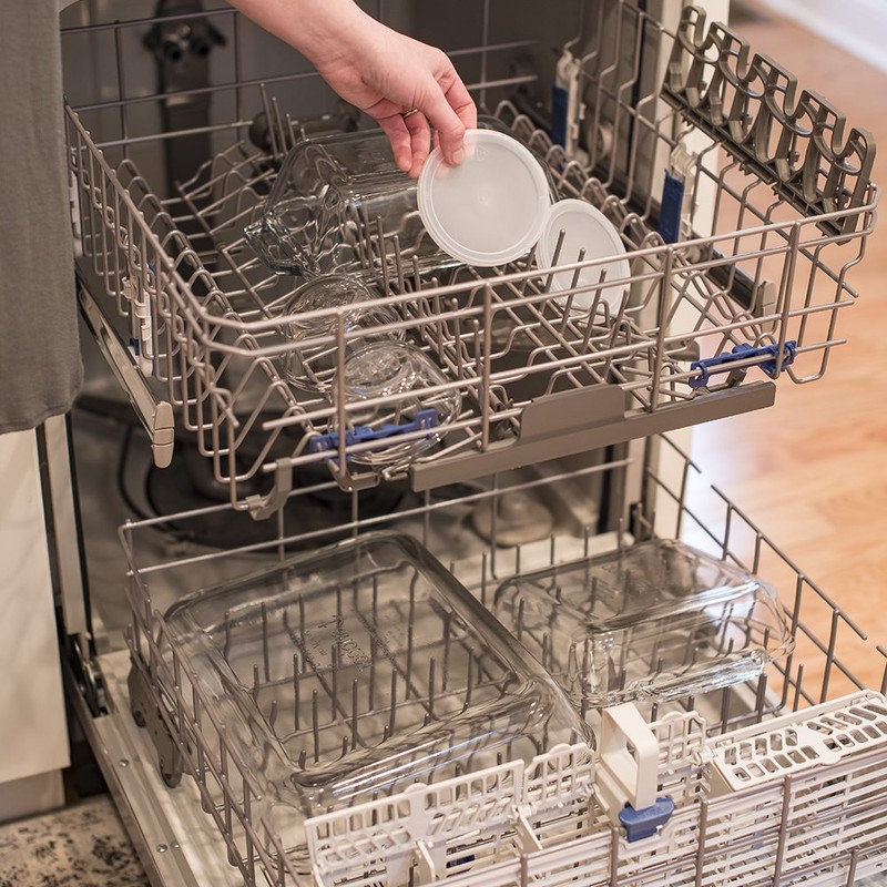 - DURABLE: This tempered glass bakeware set is microwave, pre-heated oven, refrigerator, freezer, and dishwasher safe; plastic lids are BPA free and safe to clean on the top rack of dishwasher.