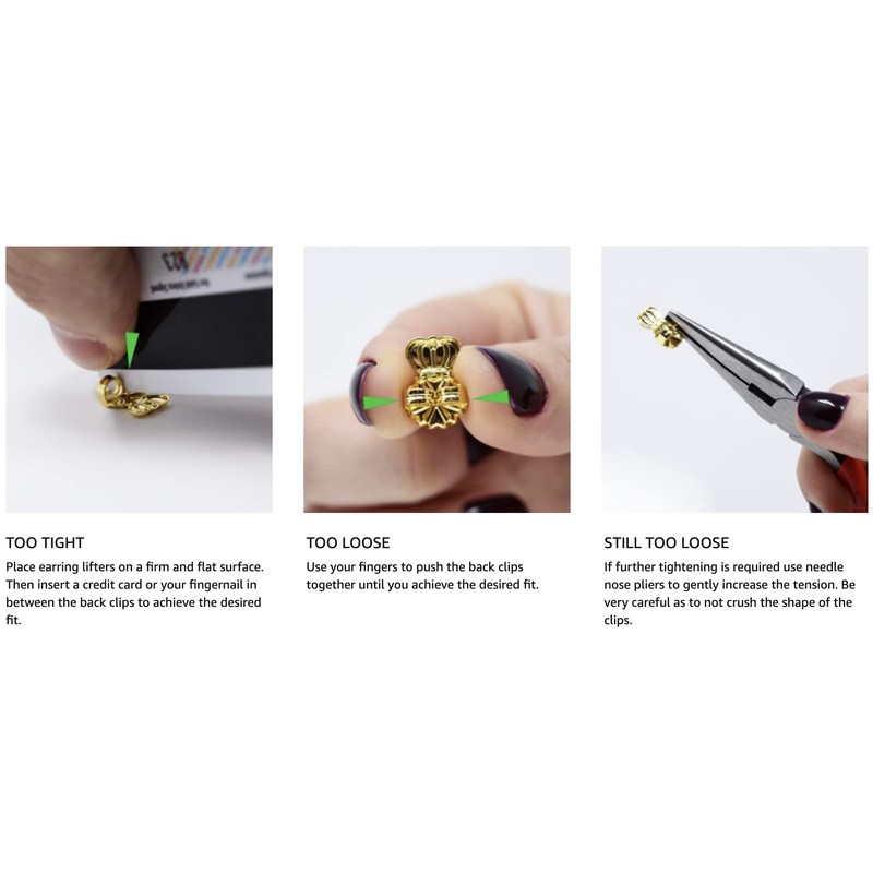 - "Say goodbye to droopy studs!" Our easy-to-grip earring backs for studs and droopy ears will make putting on your earrings a breeze.