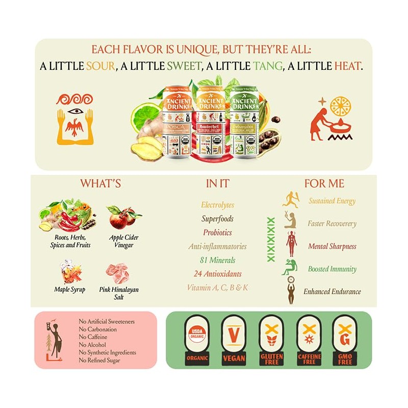 - EVERYDAY ENERGY: The sports drink that powered the past is back to fuel today with a shot of Unfiltered Apple Cider Vinegar, Himalayan Pink Salt, Maple Syrup & Probiotics. Certified Organic, Non-GMO, Vegan, Gluten-free, Paleo- and Keto-friendly.