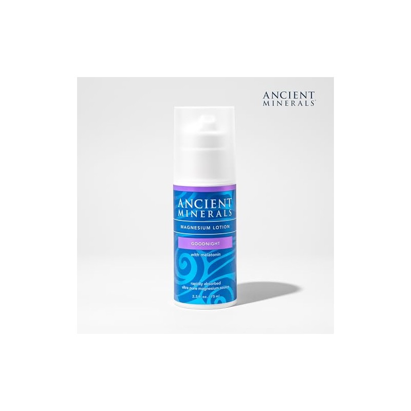 Ancient Minerals Ancient Minerals Magnesium Lotion Goodnight night cream contains melatonin with magnesium chloride and OptiMSM a topical nighttime moisturizing lotion(2.5oz)