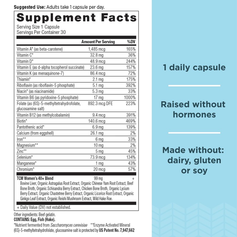 - TCM WOMEN'S 40+ BLEND- Our Traditional Chinese Method blend is based off of a Chinese tradition using herbs that has been around for more than 2,000 years. This blend contains Dong Quai extract, also known as Female Ginseng. We also added bovine liver and wild hake roe, which are considered some of the most nutrient-dense foods on this planet, and collagen-rich bone broth.