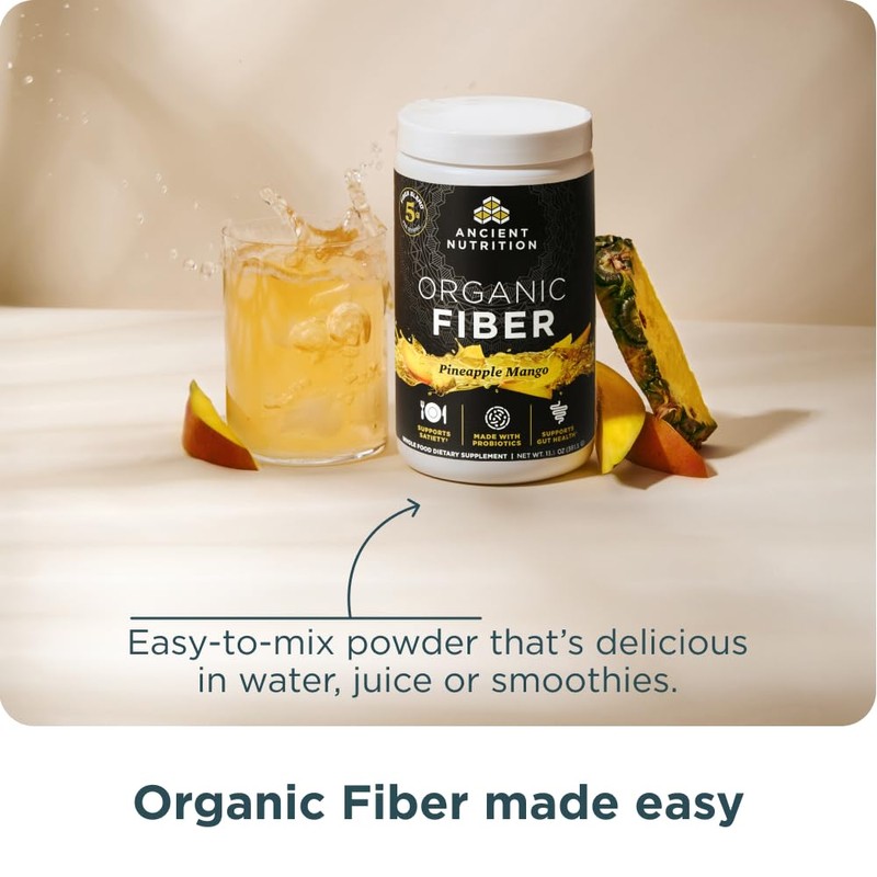 Ancient Nutrition Organic Fiber Powder, Pineapple Mango, Soluble Fiber from Acacia & Konjac Root, Supports Digestive Health, Reduces Bloating, 13.5 oz