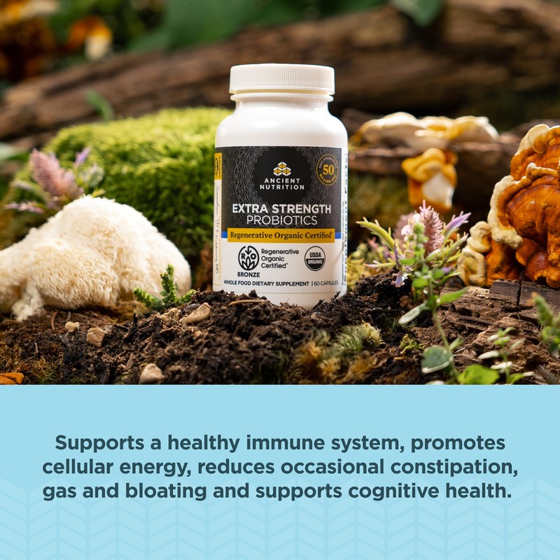 Ancient Nutrition Regenerative Organic Certified Probiotics, Extra Strength Probiotics, for Healthy Digestion and Immune System Function Support, 50 Billion CFUs* Per Serving, 60 Count