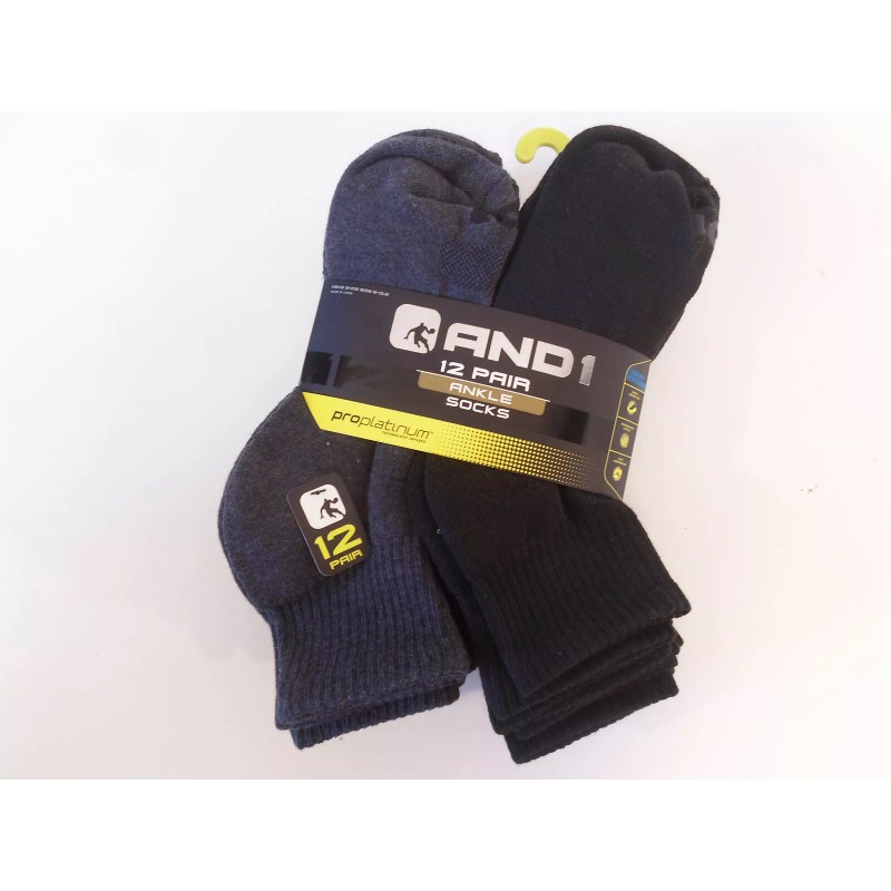 AND1 6-Black 6-Grey Pair ProPlatinum Ankle Socks Arch Compression