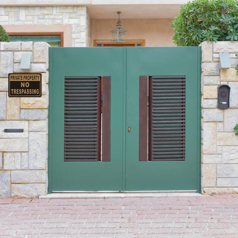 • [Application] The private property no trespassing sign is black and gold design, can be usd for home yard to politely remind people do not enter withour permission.