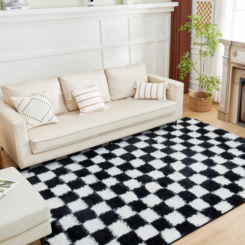 - Classic Checkered Design: The soft checkered rug design is inspired from the checkerboard pattern. Its timeless elegance allows it to be paired with any décor, enhancing the visual appeal and order of the space