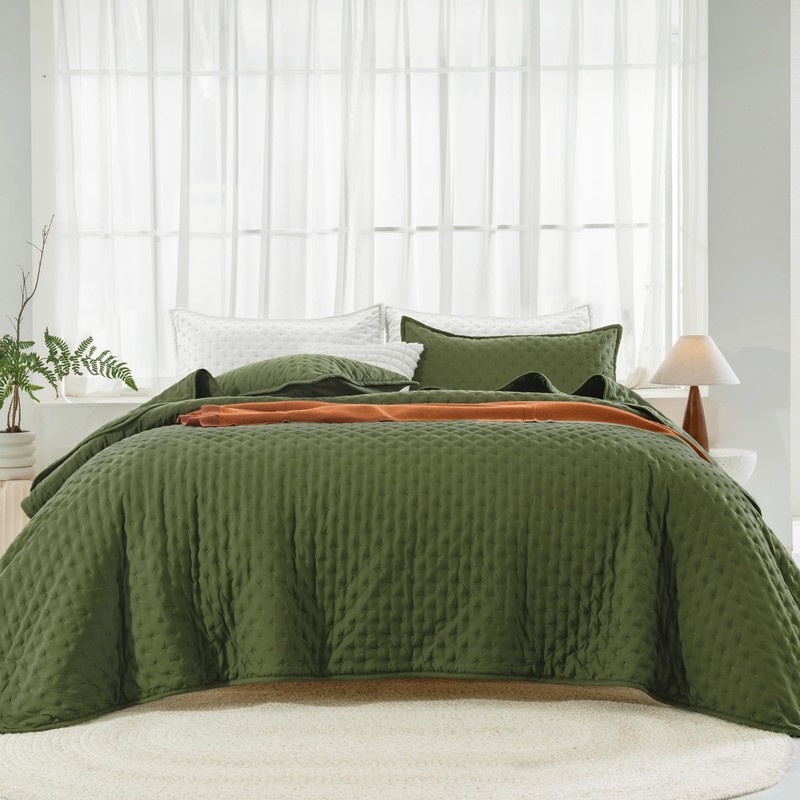 - Package Includes: This oliva green quilt set includes 1 king size quilt (106x96") and 2 pillowcases (20"x36"). Our boho quilts are a larger size than normal for overhanging the sides of the bed as advertised.