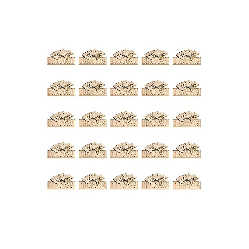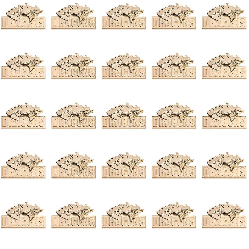 - This 3D Molded Gold Dragons School Mascot Lapel Pin Pack includes (25) 1" high x 1" wide gold metal pins in a with a dragon design and the word "Dragons"