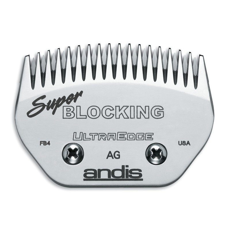 Ensure uniform coat length when clipping with the Andis Super Blocking UltraEdge Blade. This quality blade fits all Andis AG, AGC, and ACR & Oster A-5 models. The carburized steel extends edge life, and the chrome finish resists rust. Ensure the longevity of your blade's life by oiling it before every use.