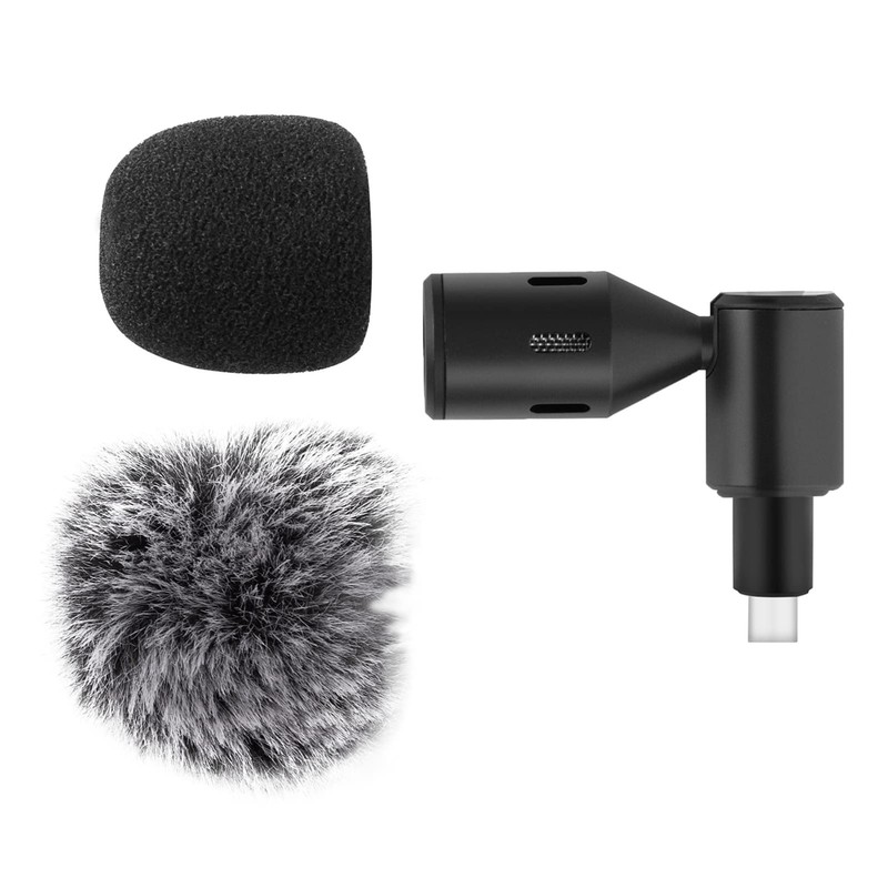 Andoer Mini Plug-in Smartphone Microphone Mobile Phone Mic Cardioid Pickup Type C Connector 90° Angle Adjustable with 2 Pieces Wind Protection for Smartphone Live Streaming Vlog Online Singing