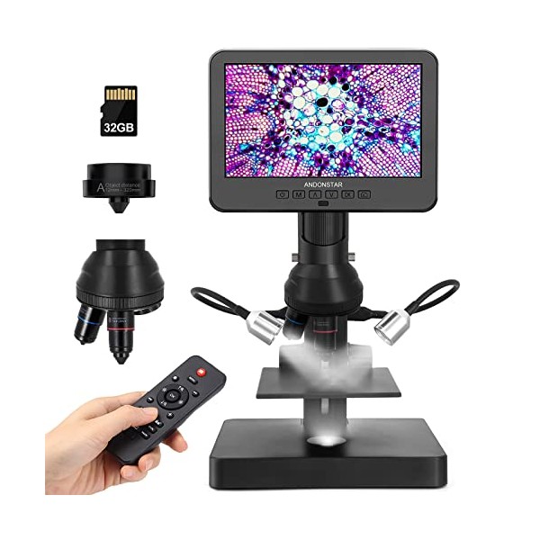 Andonstar AD246S-P HDMI Digital Microscope with 7'' Screen, 4000x 3 Lens 2160P UHD Video Record, Coin Microscope for Error Coins, Biological Microscope Kit for Adults and Kids, Prepred Slides