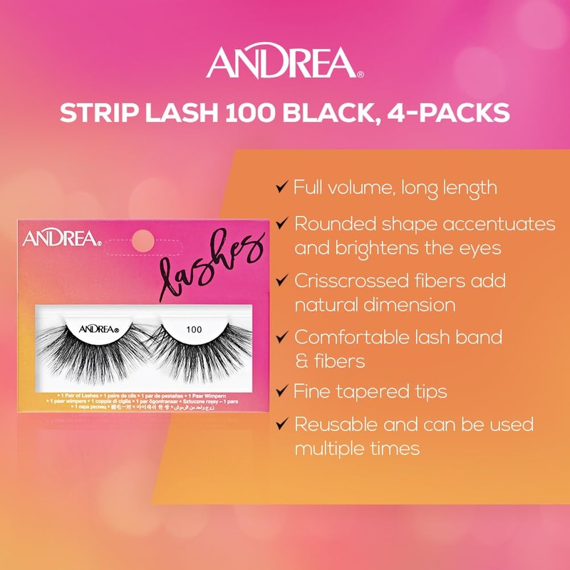• Easy and Comfortable Wear: Each pack comes with 4 pairs of Andrea Lashes 100. Designed with a lightweight and flexible band that conforms to your lash line for a seamless fit. Great even for extended wear.