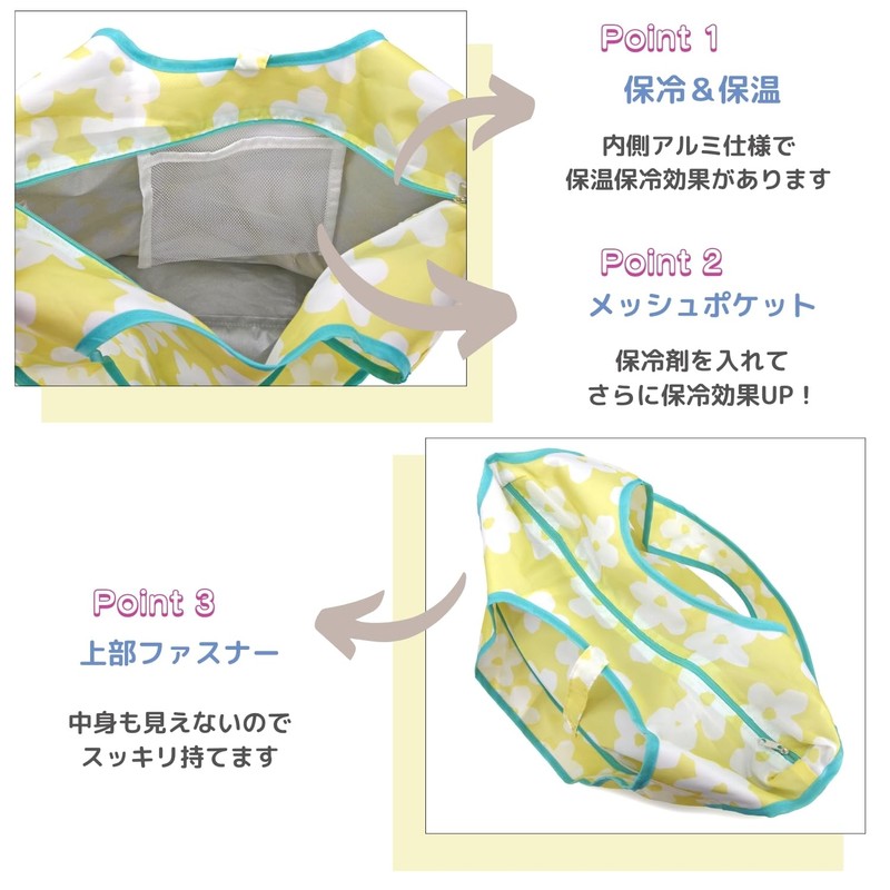 - A shopping tote bag with a cute all-over pattern design that can be used to keep cold or heat preservation, and an eco-friendly bag with zipper