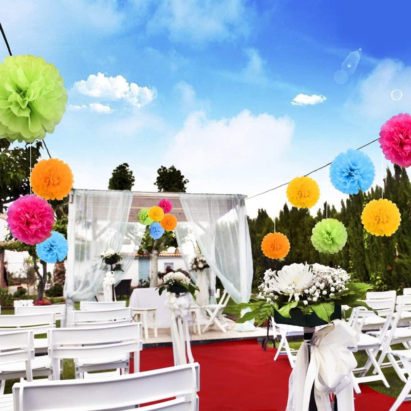 - Wide application: paper pom poms are perfect for bridal parties, birthday parties, bridal showers and birthdays. Hang them on the ceiling, under the porch or on branches. Use them to create a dreamy background for your party.