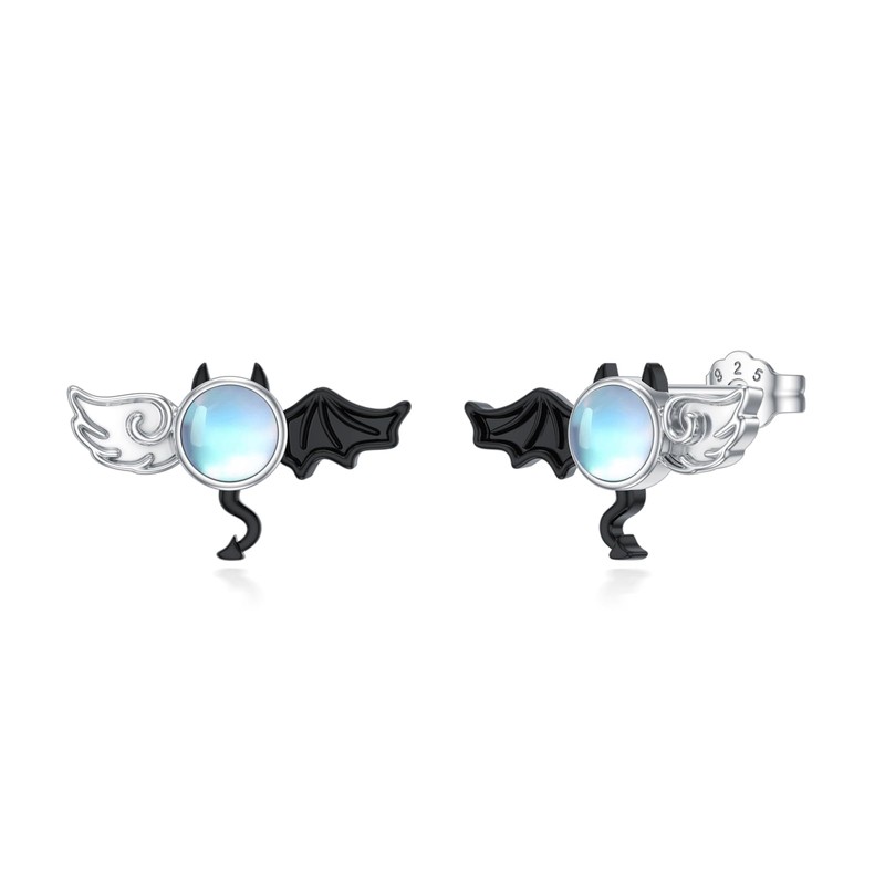 Angel and Devil Stud Earrings, 925 Sterling Silver Moonstone Stud Earrings, Jewellery, Hypoallergenic Earrings, Moonstone Earrings, Christmas, for Girls and Women, Silver
