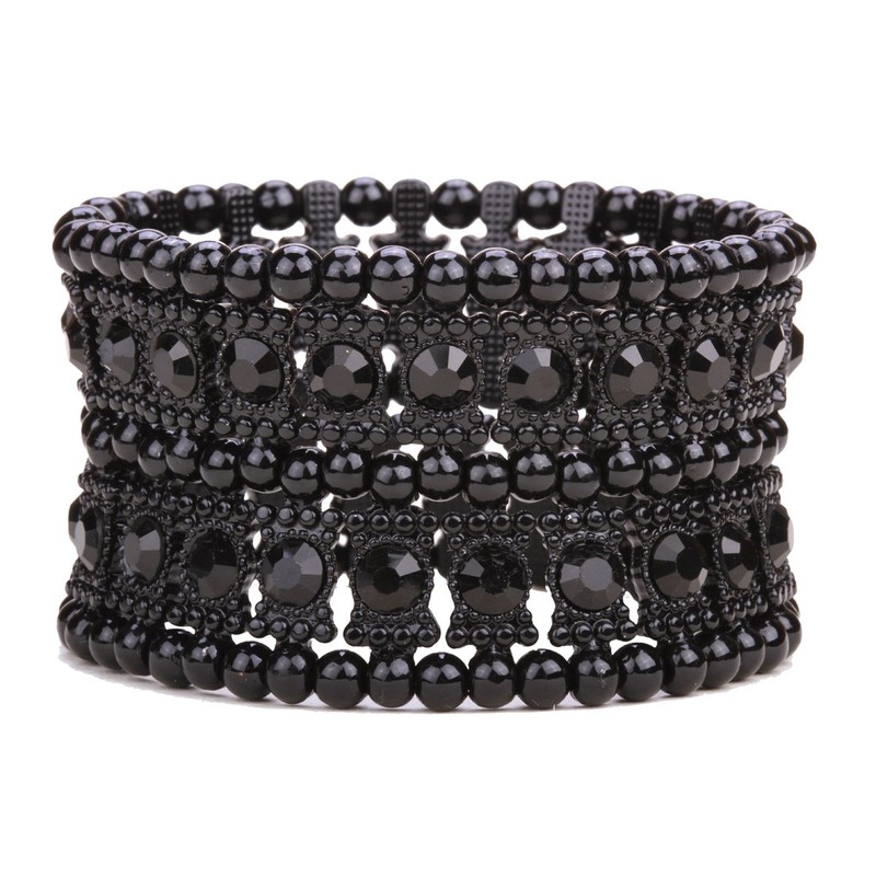 Angel Jewelry Women's Multilayer Crystal Stretch Bracelet 2 Row (black)