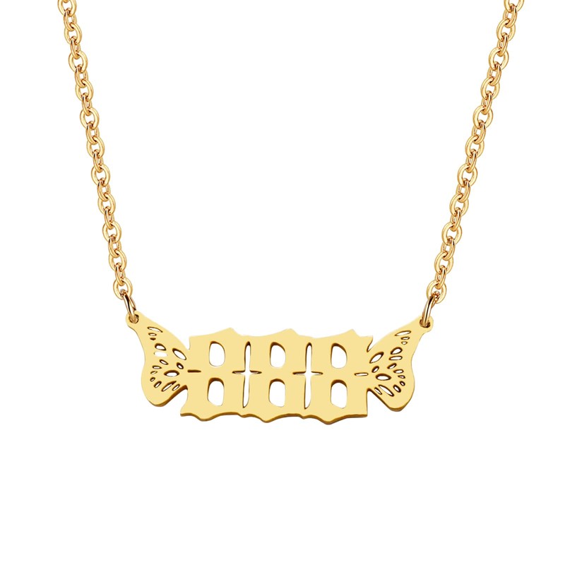 Angel Number Necklace For Women, 18K Gold Plated 000,111,222,333,444,555,666,777,888,999 Butterfly Wings Pendants Choker Numerology Jewelry (888)