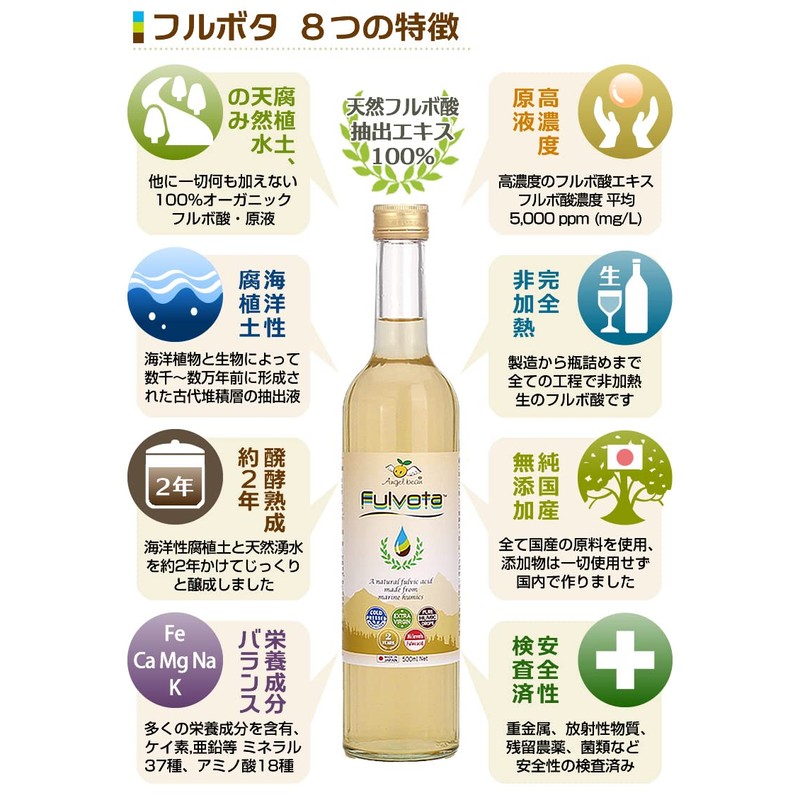 Angelbean フルボタ フルボ酸 原液 国産 非加熱 生フルボ酸エキス Fulvota お試しサイズ 100ml