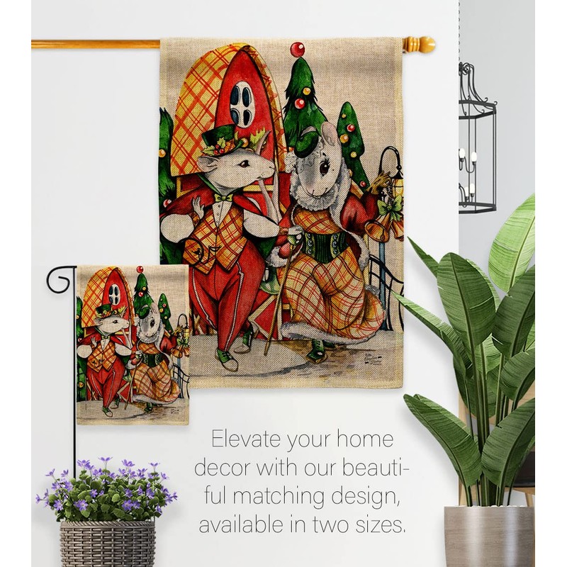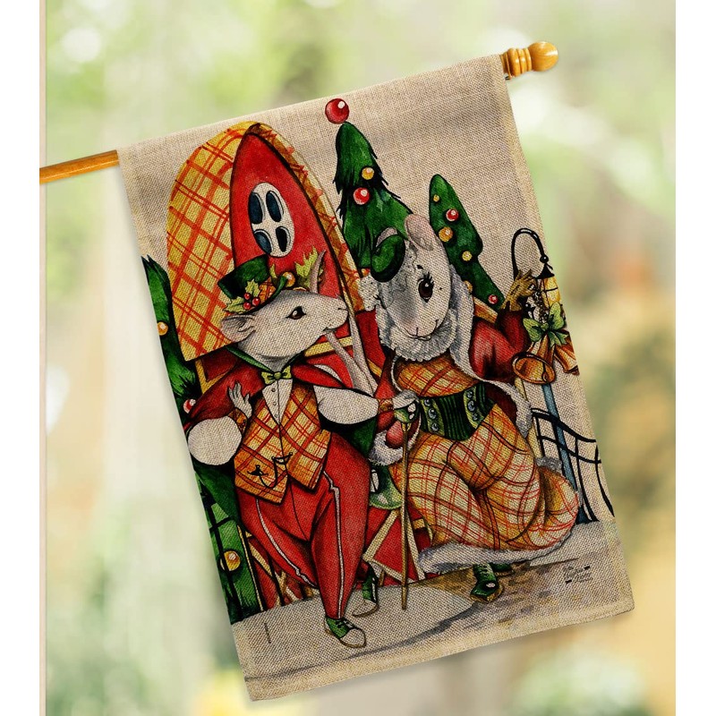 Angeleno Heritage Holiday Mouses Burlap House Flag Pack Winter Christmas Santa Marry Xmas Present Reindeer Season Wintertime Snow Embroidery Banner Small Garden Yard Gift Double-Sided, Made in USA