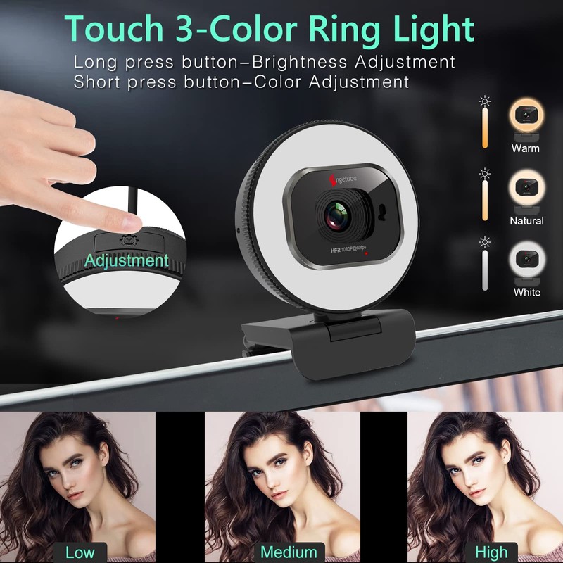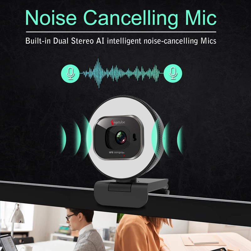 Angetube Webcam 1080P 60FPS with Ring Light, HD USB Streaming Web camera with...