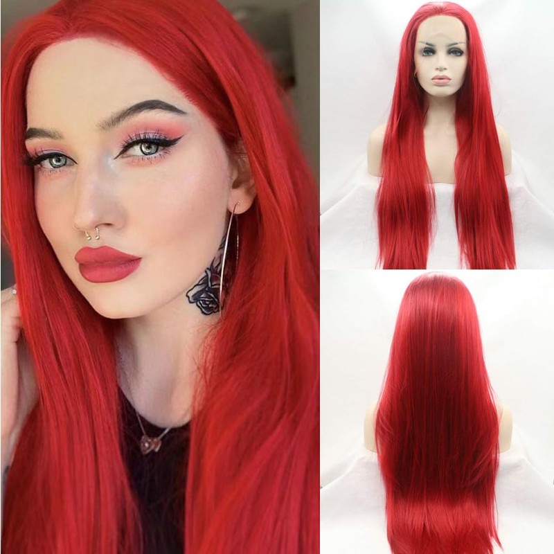 - 5.Package Included: 1x24 Inches Synthetic Long Straight Red Lace Wig + 2pcs x Stretchable Elastic Nylon Best Wig Caps.