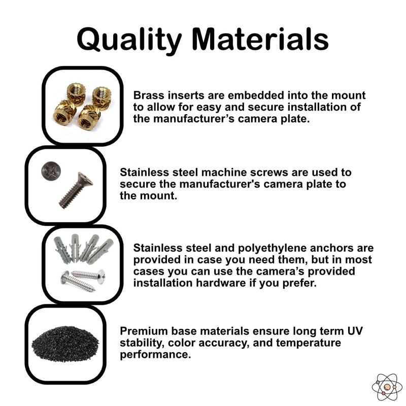 • Integrated brass threaded inserts and stainless-steel hardware to attach the camera mount plate.