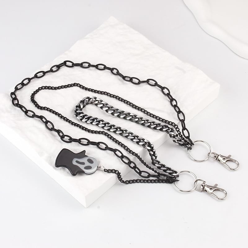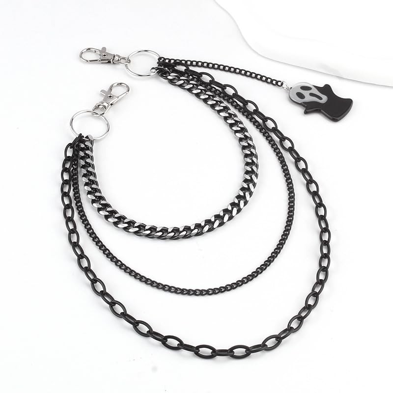 ANGLEQUEEN Punk Layered Pants Chain for Men Women, Black Ghosts Tassel Wallet Chains, Hip Hop Pocket Chains, Goth Jewelry Key Chain Wallet for Men (Ghosts)