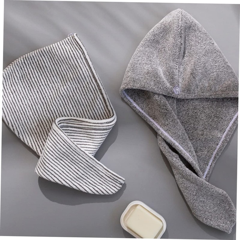 Angoily 2 Piezas Gorro para Cabello seco Toallas toalas Microfiber Towel Gorro de baño carbón de bambú Bufanda Gorro de Toalla para Cabello seco Sombrero de Toalla Fibra de carbón