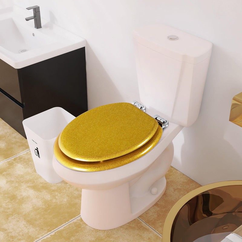 Angol Shiold Glitter Toilet Seat Molded Wood Round Toilet Seat with Quietly Close and Quick Release Hinges, Easy to Install also Easy to Clean (Round 16.5'', Gold)