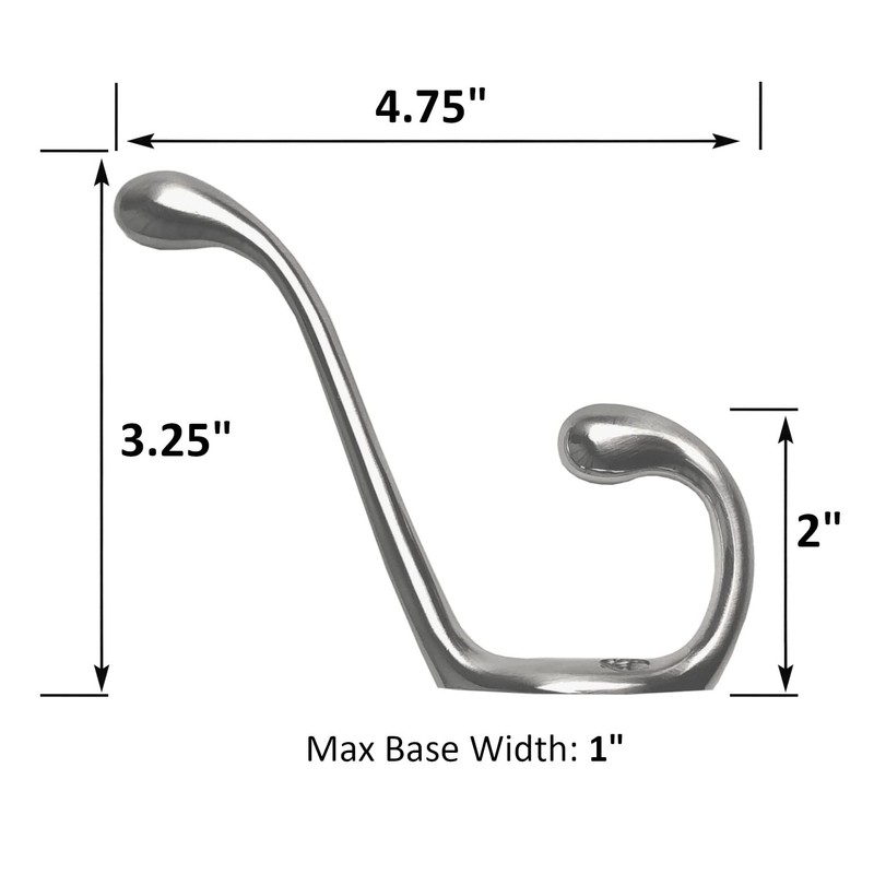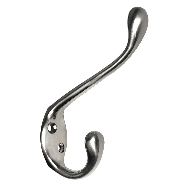 - Beautifully crafted zinc metal design with a brushed satin nickel finish. Dual prong design looks great in entryways, bathrooms, and even in kitchens!